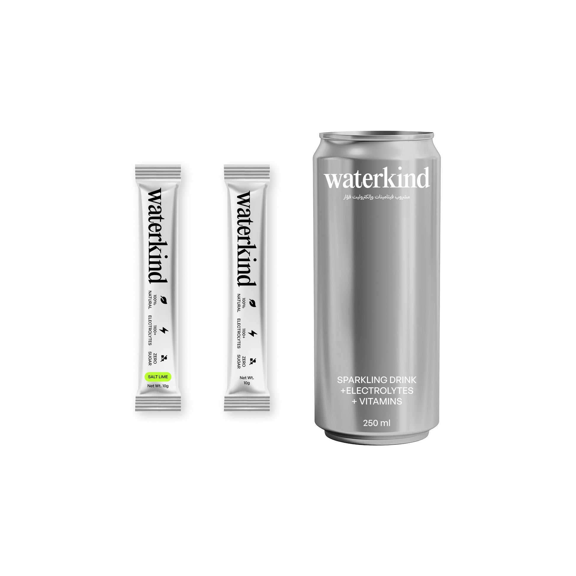A full hydration restock: a 24-pack of cans plus 10 Salt Lime sachets and 10 Original sachets. Mix zero-sugar sachets with water when you need a higher electrolyte hit, and grab a cold can when you want something light, fizzy, and functional.