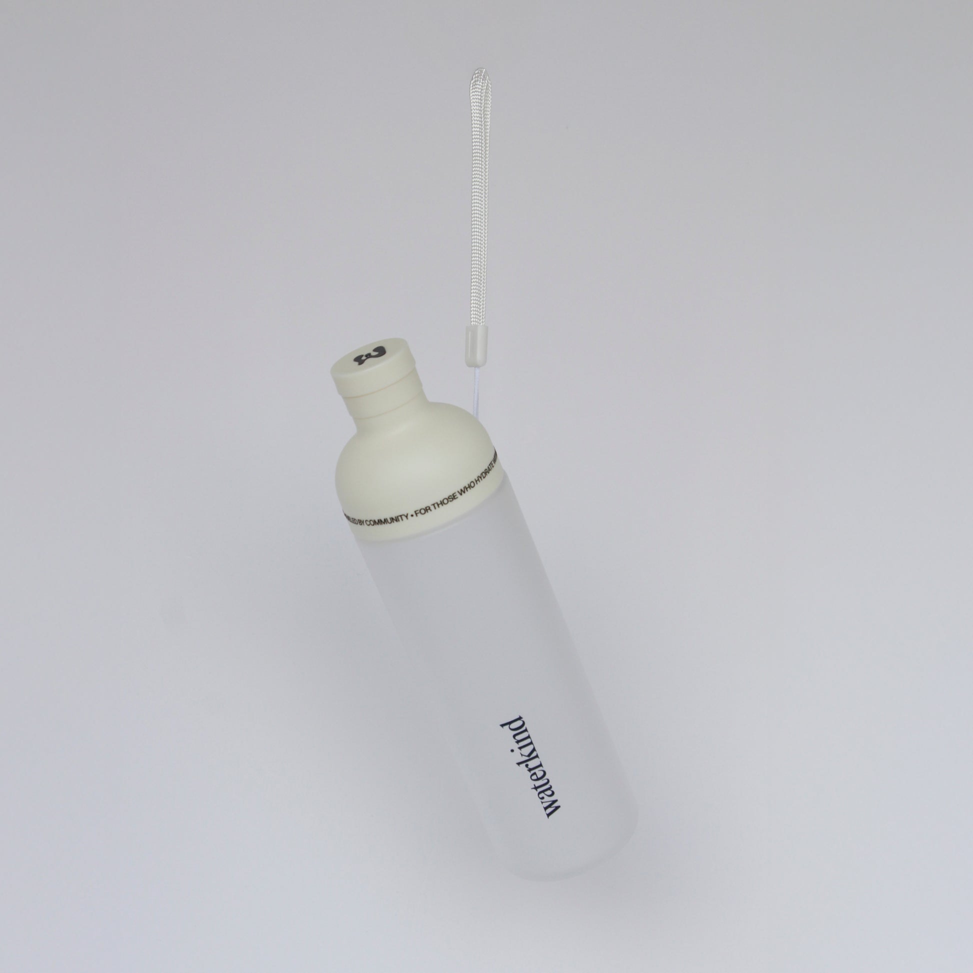 Clean, light, and easy to carry. A 600ml frosted white Waterkind bottle with a soft neutral cap and strap – made to sit comfortably next to your laptop, mat, or bag without shouting for attention.